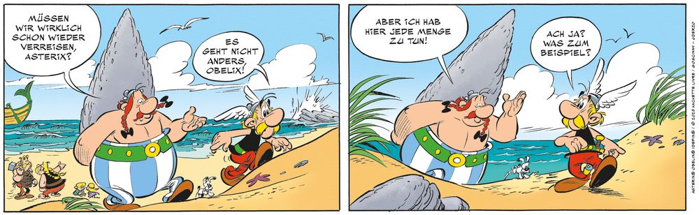 Im Fall von ASTERIX IN LUSITANIEN kommt zudem erneut Thierry Mebarki als Kolorist ins Spiel. Farben haben bei Asterix bekanntlich seit jeher eine starke Wirkung: Atmosphäre, Stimmung und Humor liegen nicht nur im Text, sondern auch im visuell-narrativen Gesamtgefüge.