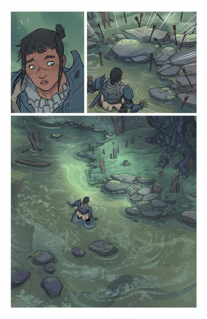 ISOLA ist ein visuell beeindruckendes Werk. Karl Kerschl und Msassyk erschaffen eine Welt, die in ihrer Schönheit und Detailverliebtheit ihresgleichen sucht. Die Panels sind oft wie Gemälde komponiert, die Farben leuchten in satten Tönen und schaffen eine märchenhafte Atmosphäre. Die Natur spielt eine zentrale Rolle. Wälder, Sümpfe, Berge und Ruinen werden mit einer solchen Sorgfalt dargestellt, dass man als Leser immer wieder innehalten möchte, um die Bilder zu genießen.